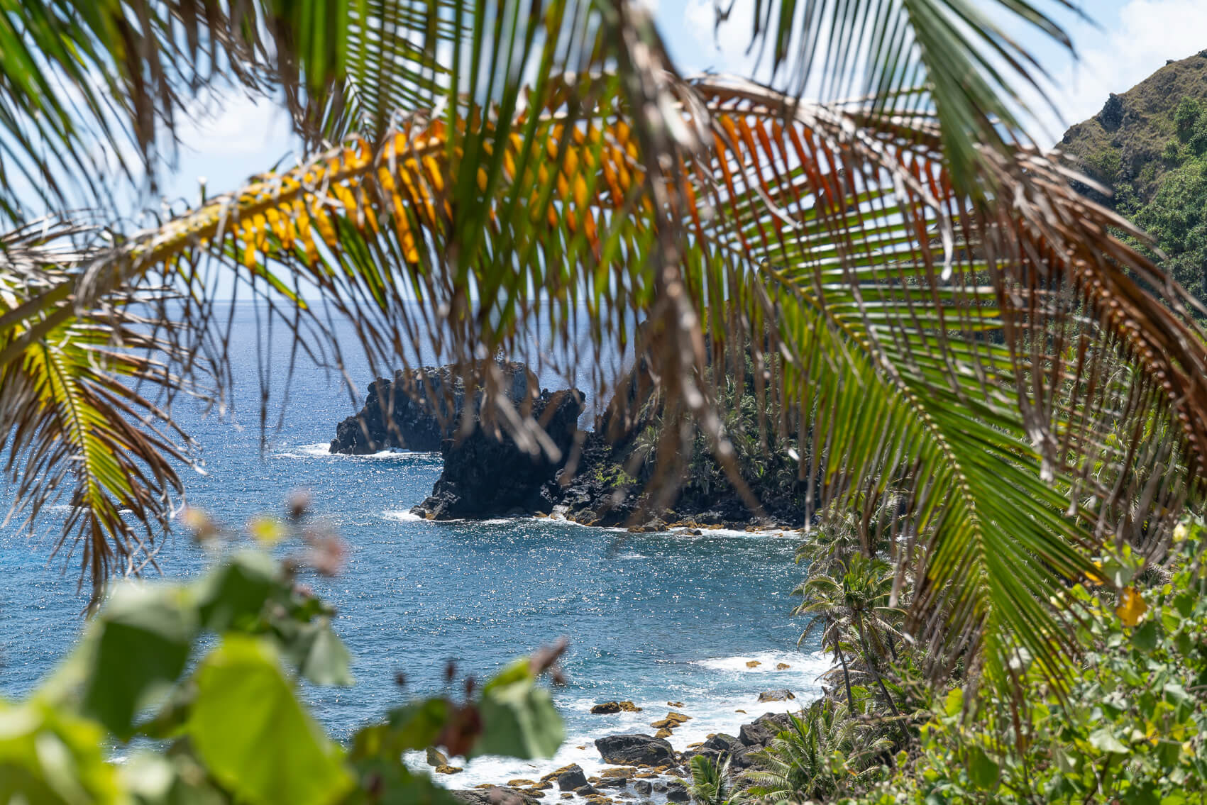 Blick auf die Bucht, in der das Wrack der HMS Bounty liegt.